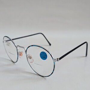 (NWT) Vintage 90's Round Metal Bi-Focal Reading Glasses (Silver/Blue P)