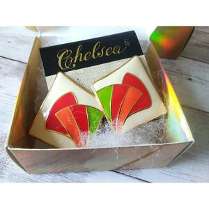 The brand is Chelsea, and these earrings were rescued from a warehouse in New Jersey, where they waited for over 40 years to find their new owner. They come packaged in a gold gift box, ready to be enjoyed.