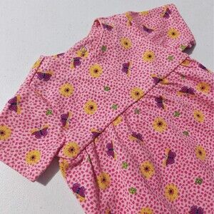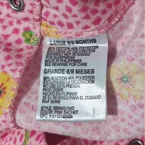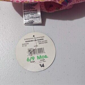 New with tags vintage girls 6 to 9 month baby romper from Simply Basic. Dark and light pink with yellow flowers and butterflies. Snap closure on back and bottom.