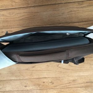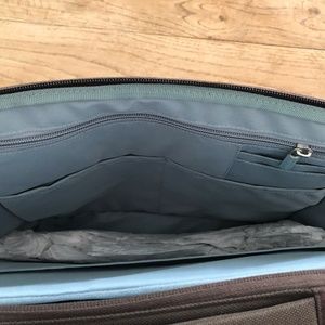 NWT Vintage Belkin Brown with Light Blue Messenger/Large Laptop Bag. Padded section for laptop. Divider to separate laptop section from other items inside the bag. Zippered section inside with slots for cards, phone and other small items. Additional zippered section on the outside front of the bag. . Approximate dimensions are: