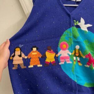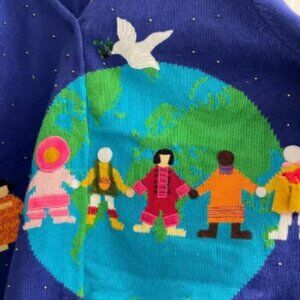 NWT Vintage BellePointe World Peace Blue Sweater Cardigan