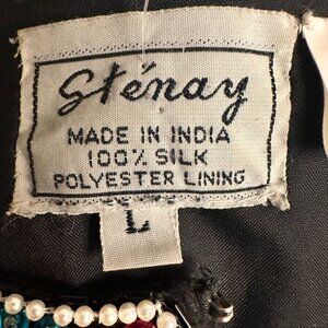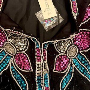 NWT Vintage Black Sequin Beaded Floral Jacket 100% Silk Size Large by Stenay