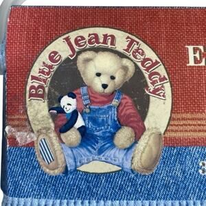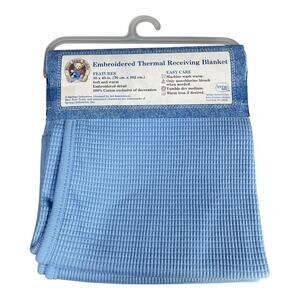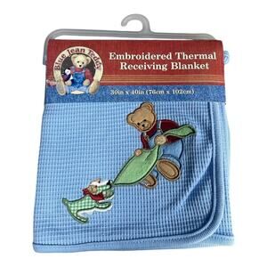 NWT Vintage Blue Jean Teddy Bear Embroidered Thermal Receiving Blanket 30”x40”