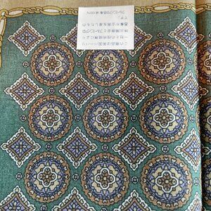 Add a touch of vintage elegance to your collection with this Burberrys cotton scarf, featuring a detailed geometric pattern in rich shades of green, brown, and gold.