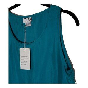 NWT Vintage CLIO 100% Silk Turquoise Blouse Grunge 90s Luxe Size S