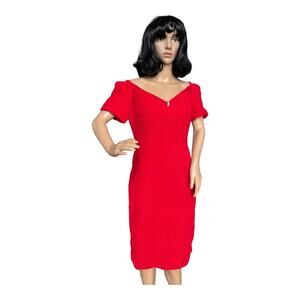 Vintage 80s red party dress with an off the shoulder sweetheart neckline and figure flattering fitted cut. This scene stealing beauty is sure to garner you countless compliments!