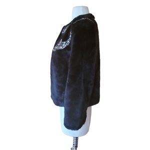 NWT Vintage Caramel Black Faux Fur & Sequin, lined, acrylic/polyester blend, Jacket in excellent condition. Measurements: bust 36"
