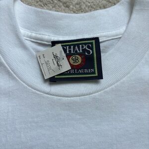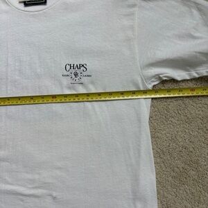 This vintage Chaps Ralph Lauren T-shirt is a must-have for any fishing or boating enthusiast. The white colored shirt is made of high-quality cotton material and features a unique graphic design that captures the essence of boating. The shirt is available in size L and is suitable for both men and women. The shirt's attributes include short sleeves, a regular size type. This Chaps Ralph Lauren T-shirt is a perfect addition to any vintage clothing collection and is a great way to show off your love for boating.