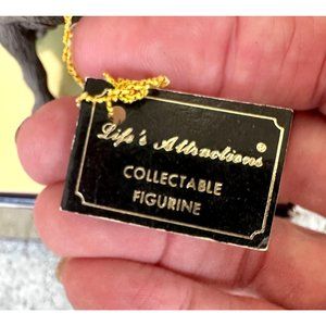 Gold colored cord with tag attached that reads, "Life Attractions Collectible Figurine"