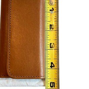 British Tan Water Buffalo Leather. Six brass coated key rings. Features side slot for credit card. Unisex. Includes original protective duster bag.