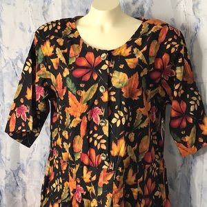NWT Vintage Conversation Pieces fall leaf design long dress 100% cotton