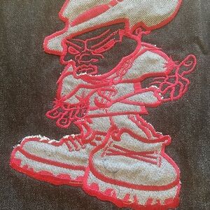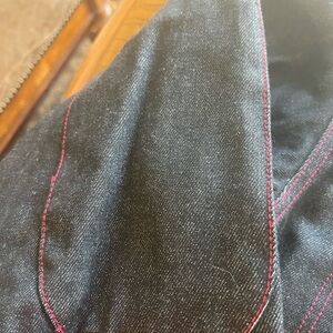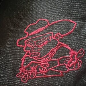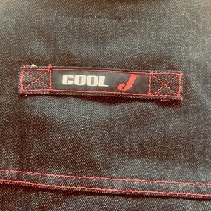 NWT Vintage Cool J Black Raw Denim Urban-Wear Jacket Red-Line Embroidered