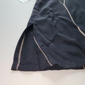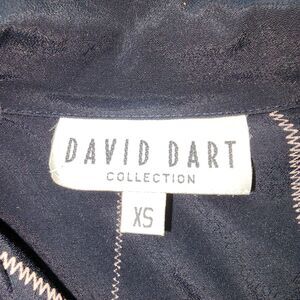 NWT Vintage David Dart Collection Black Button Down Short Sleeve Shirt. Tag shows size XS but this is oversized so will fit XS to L depending on how you want it to fit. Measurements are in pictures for reference. This unique shirt has mother of pearl buttons, side slits and geometric lines.