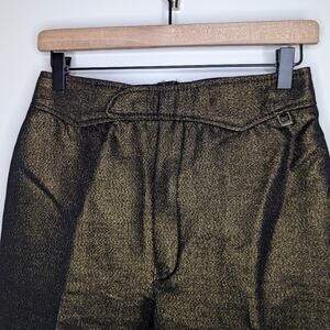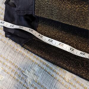 Black with gold shimmer. Stirrups. These are a vintage size 12, but based on measurements they are probably more like a current medium (8/10).