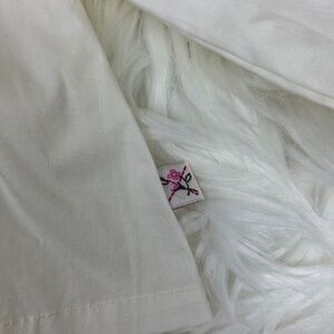 A darling NWT vtg baby girl's button-down long sleeve top with a peter pan collar and petite embroidered flowers. Pink trim on the collar and sleeves.
