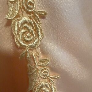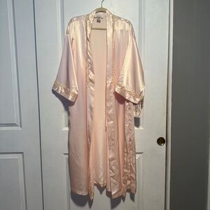 NWT Vintage Dentelle Pink Satin Long Robe Rose Lace Trim Size Large Deadstock