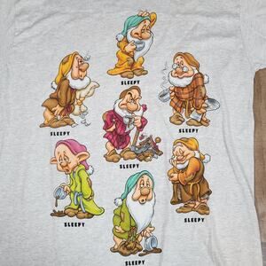 New With Tags Vintage Disney World Snow White Seven Dwarves Sleepy Sleepshirt One Size. Measurements are in the photos. Minor dime sized light colored stain on bottom left front of shirt, see all pictures, smoke free home, ships quickly!