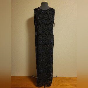NWT Vintage Dressing Clio Black & Purple Sheer Velvet Dress Size Small