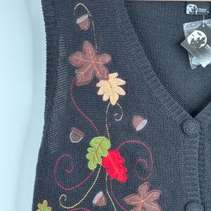 NWT Vintage Fall Sweater Vest XL Embroidered Leaves 90s Witchy Granny Halloween