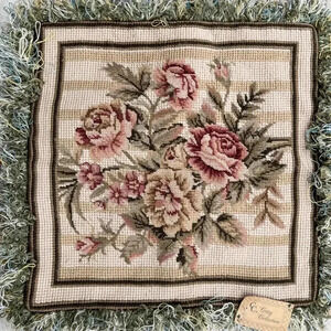 NWT Vintage Floral Handwork Needlepoint Pillow Cover Velvet Cotton Wool Roses