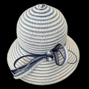 NWT Vintage Frank Olive By Gabriel Amar Blue White Kentucky Derby Picture Cloche Sun Hat