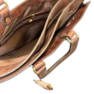 Vintage HIT brown leather briefcase with zip closure and brass hardware.