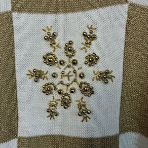 NWT Vintage Hand Beaded Metallic Snowflake Turtleneck Christmas Sweater M