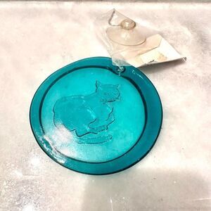 NWT Vintage Handmade Glass Cat Suncatcher Ornament with Suction Cup and Hook