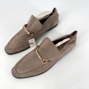 NWT Vintage Havana 7.5 Suede Slip On Loafer Taupe Gold Buckle Polly Mule