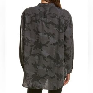 Snap Collar Button-Up Shirt in phantom camo with dual chest pockets, snap cuffs and curved hem with side pockets. 100% lyocell. Oversized