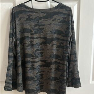 Stylish camo print top with bell sleeves. Perfect for a casual day out. Message me for additional information regarding measurements, etc.