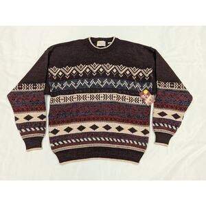 NWT Vintage Heavyweight knitted South Mountain Brown Geometric Sweater Mens XL