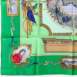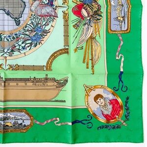 NWT Vintage Hermes Scarf Carré 90 "Le Geographe" in Green