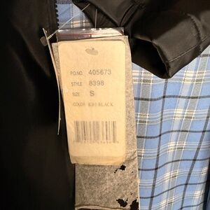 Zipper and snap closure at front with extra snaps attached to tags.