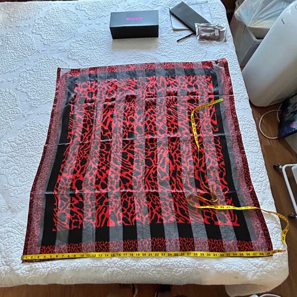 NWT Vintage JC Penney Red Black Scarf Animal Print 40 x 40 in Square Silk Feel