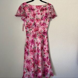 NWT Vintage Janestreet Pink Floral Silky Peonies Valentines Dress sz XS
