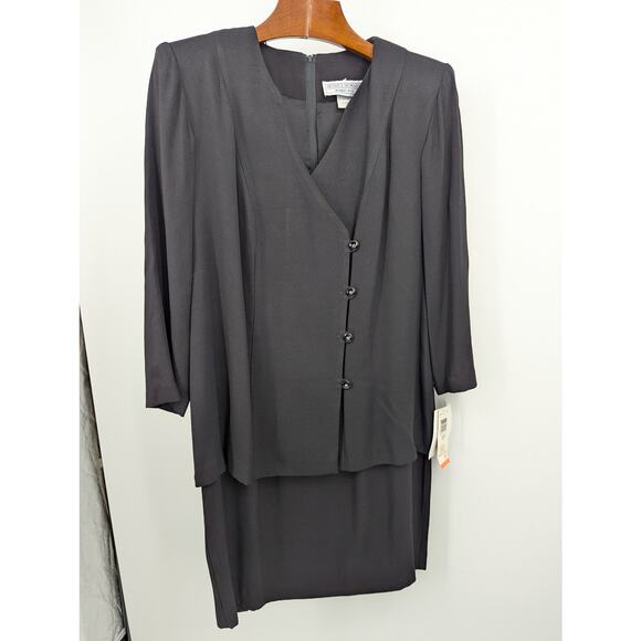 NWT Vintage Jessica Howard Black Gown Size 18 Long Sleeve Skirt Suit