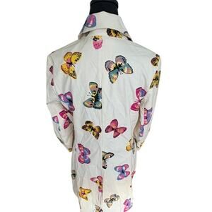 Add a whimsical touch to your wardrobe with this Karen Kate butterfly print coat. Featuring a vibrant multicolored butterfly pattern on a cream backdrop, this coat is both playful and stylish. Its lightweight material and relaxed fit make it perfect for layering during the spring and fall seasons.
