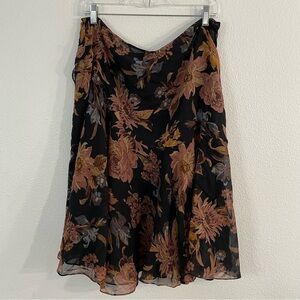 NWT Vintage Lauren Ralph Lauren 100% Silk Floral Print Midi Skirt Womens 14 Y2K. Black with floral print layover. 100% silk, lined, very lightweight and then material, ruffle details. Size zip closure. Waist across = 18”. Brand new with tags.