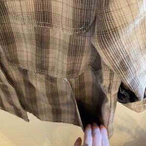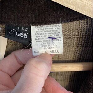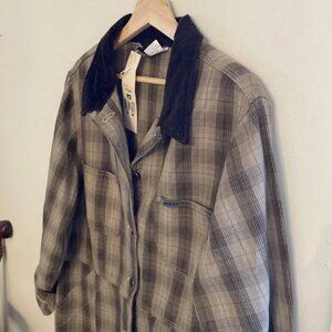 Vintage shacket with corduroy collar. Brown plaid. Deadstock Lee's. S Medium. Unisex (in my opinion, fits size small for men, Large for women.) Tags still attached. Barn coat field jacket. Lightwieght. 4 pockets. So cute! But its too big on me.
