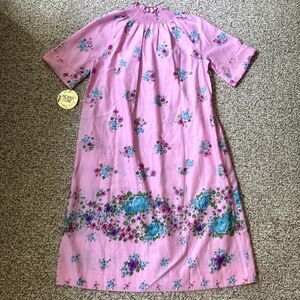 NWT Vintage Models Coat Nightgown Size 8 M Pink Floral Snap Granny House Coat