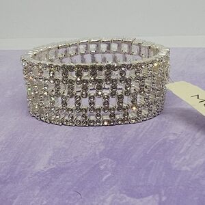 NWT Vintage Monet Silver Tone Crystal Rhinestone Chunky Stretch Bracelet