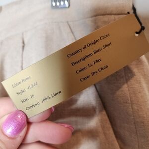 NWT Vintage Nordstrom Linen Beige highrise pleated lined shorts. Size 16