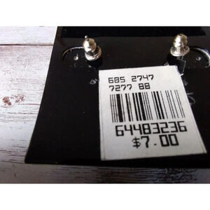 Silver-plated and about an inch wide, they feature surgical steel posts and were made in the USA. Even the original $7 price tag remains attached, showcasing their authenticity.