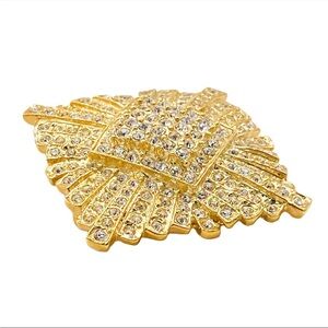 NWT Vintage Roman Company Rhinestone Brooch, Gold Tone, Starburst Diamond Shape