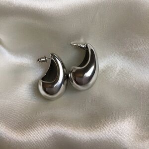 NWT Vintage Silver Raindrop Chunky Stainless Steel J Hoop Bottega Style Earrings