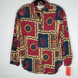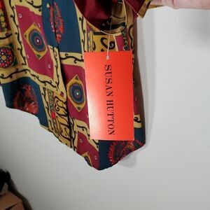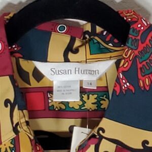 NWT Size 14 Vintage Button up Blouse Brand Susan Hutton. 100% cotton feels like Nylon. Covered buttons.