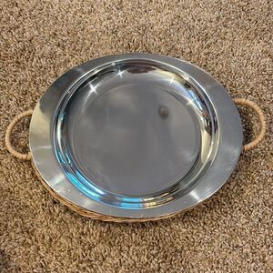 NWT Vintage Sizzling Platters Rattan Wood trays Set of 4 Steak Grill plates