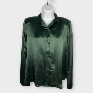 NWT Vintage Suzanne Somers Loungewear Collection Medium Green Silk Blouse Top
