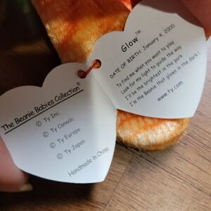 Glow DATE OF BIRTH: January 4. 2000 To find me when you want to play Look for my light to quide the way I'll be the brightest in the park I'm the Beanie that glows in the dark
